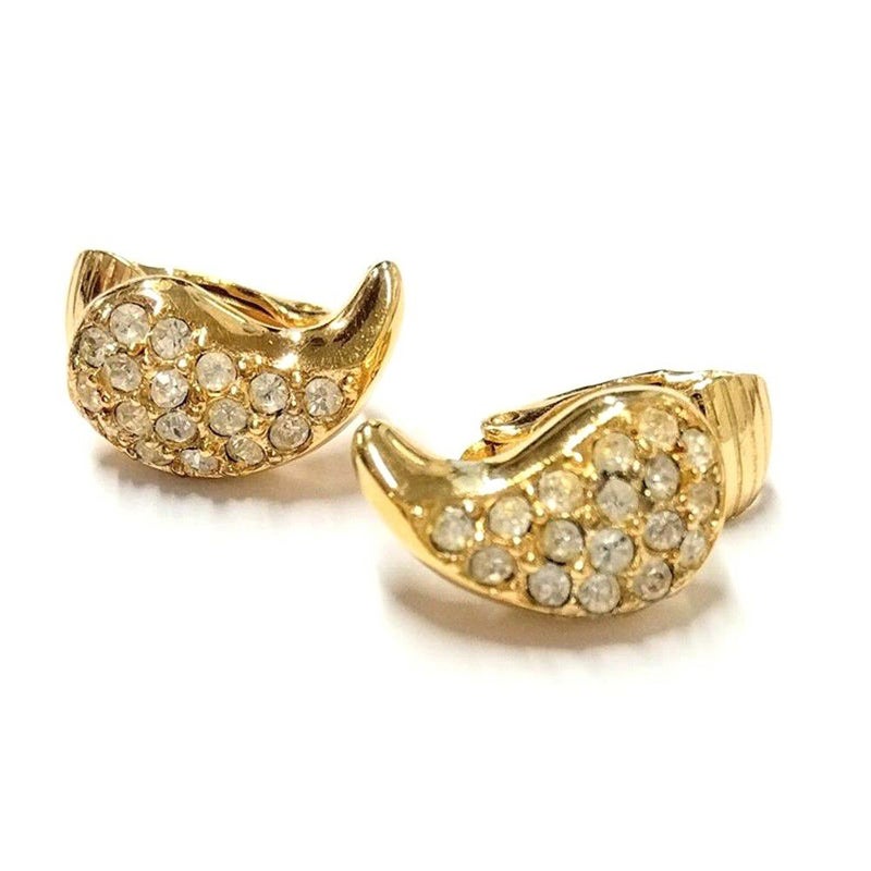 4. クリスチャンディオール Christian Dior ドロップ イヤリング ラインストーン GPg ゴールド【中古】