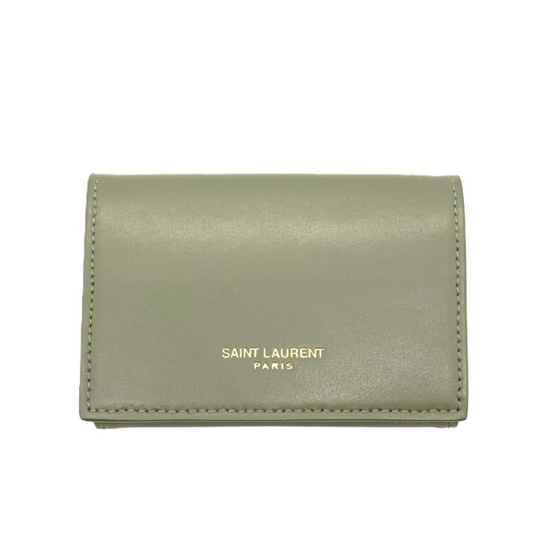 サンローラン SAINT LAURENT コンパクトウォレット 三つ折り財布 レザー 678272 カーキ【中古】