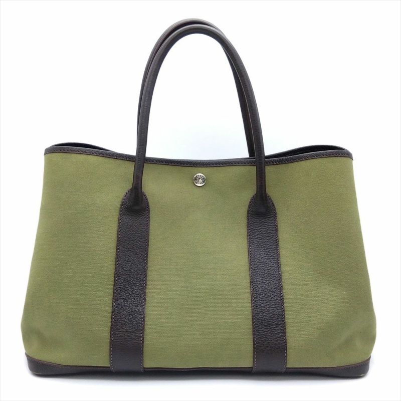 3. エルメス HERMES ガーデンパーティ PM ハンドバッグ トワルオフィシエ レザー □F刻印 カーキ ユニセックス【中古】