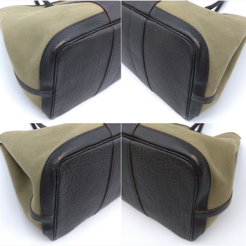 4. エルメス HERMES ガーデンパーティ PM ハンドバッグ トワルオフィシエ レザー □F刻印 カーキ ユニセックス【中古】
