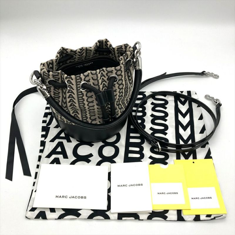 3. マークジェイコブス MARC JACOBS ザ モノグラム ジャカード マイクロ バケット ショルダーバッグ キャンバス H603M06RE22 ベージュ シルバー金具 レディース【中古】
