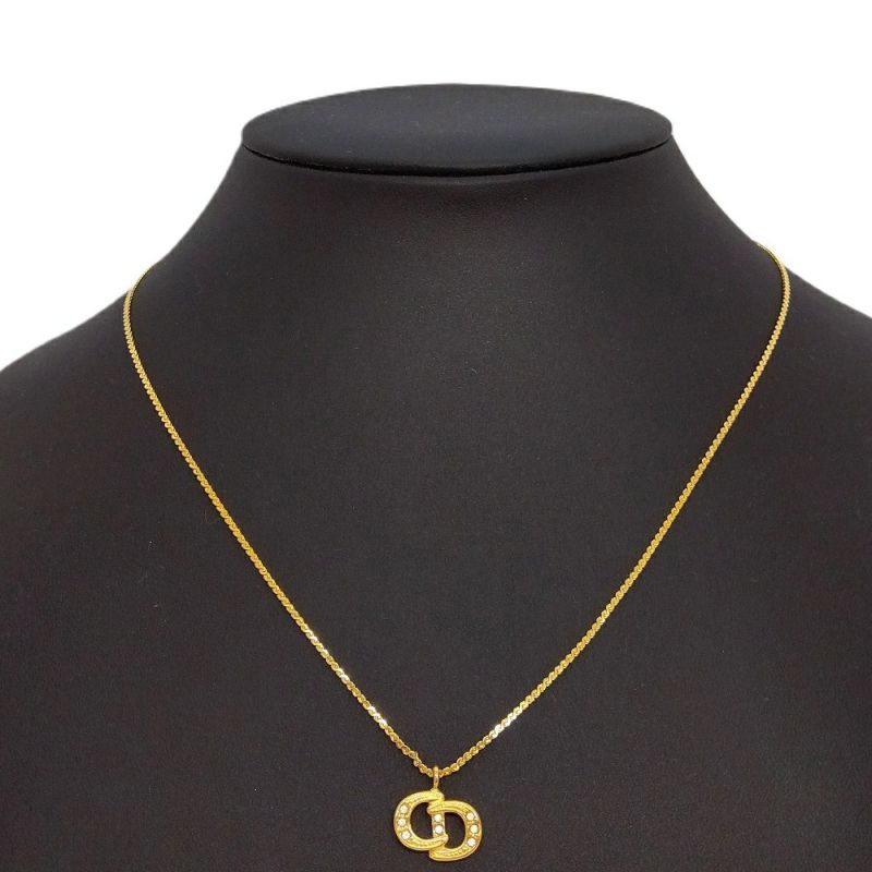 クリスチャンディオール Christian Dior CD ロゴ ネックレス ゴールド GP 8P ラインストーン GERMANY 【中古】