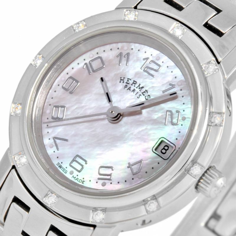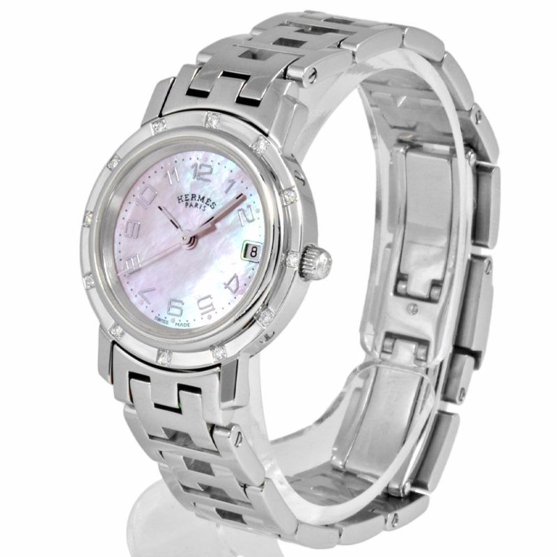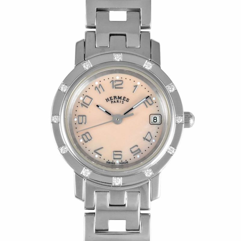 3. エルメス HERMES CL4.230 クリッパー ナクレ 腕時計 ピンクシェル文字盤 SS レディース【中古】