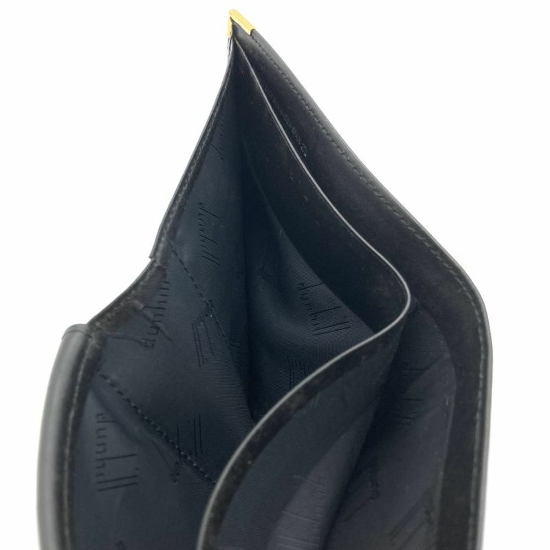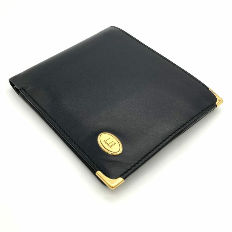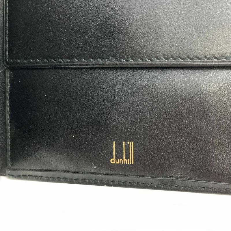 4. ダンヒル Dunhill 二つ折り財布 レザー ブラック ロゴ プレート メンズ【中古】
