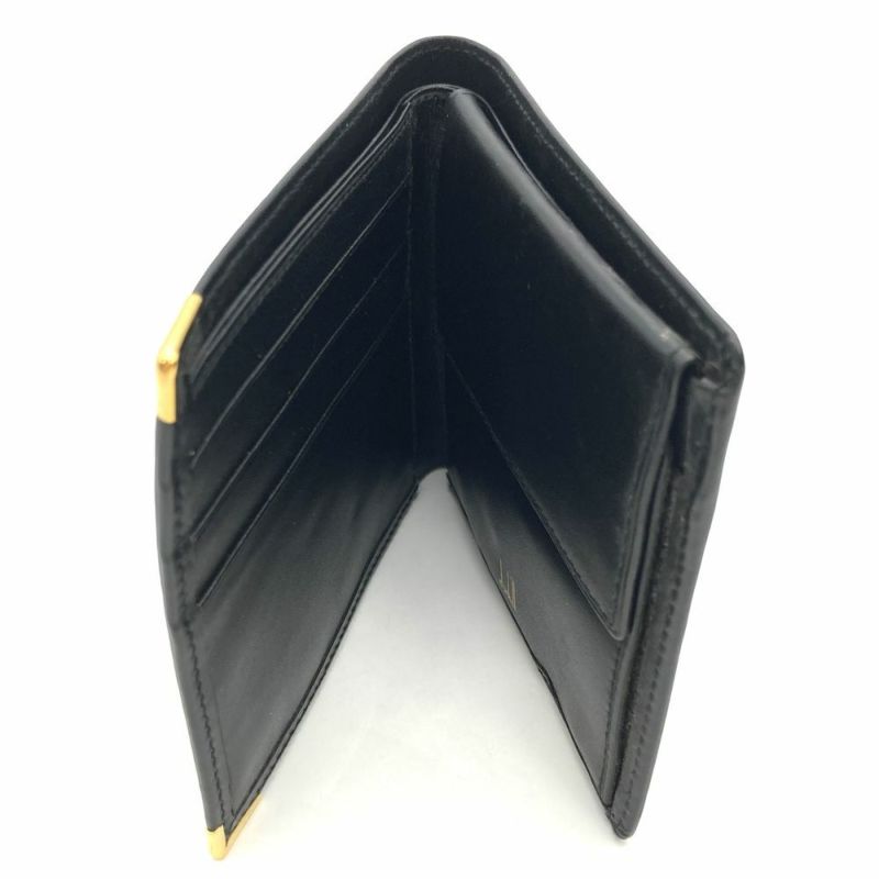 ダンヒル Dunhill 二つ折り財布 レザー ブラック ロゴ プレート メンズ【中古】