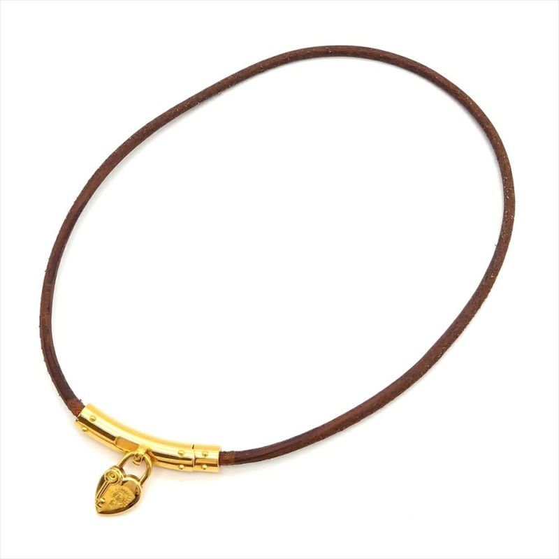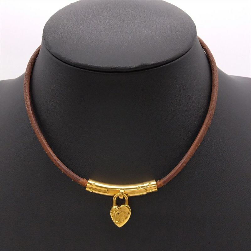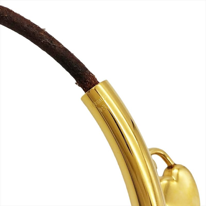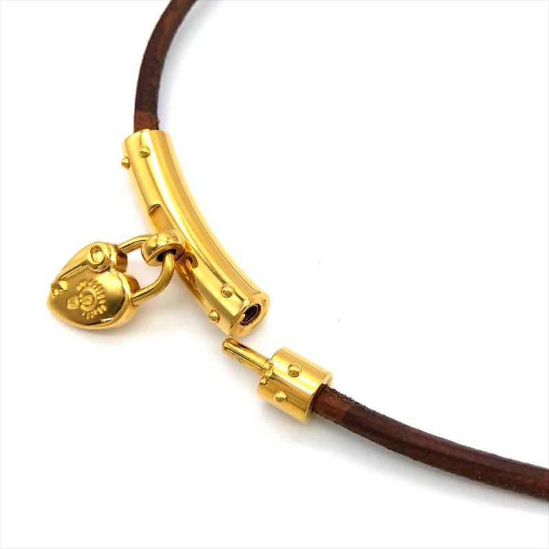 3. エルメス HERMES ヴィヴィリデ チョーカー レザーg 金属 36cm ゴールド ハート レディース【中古】