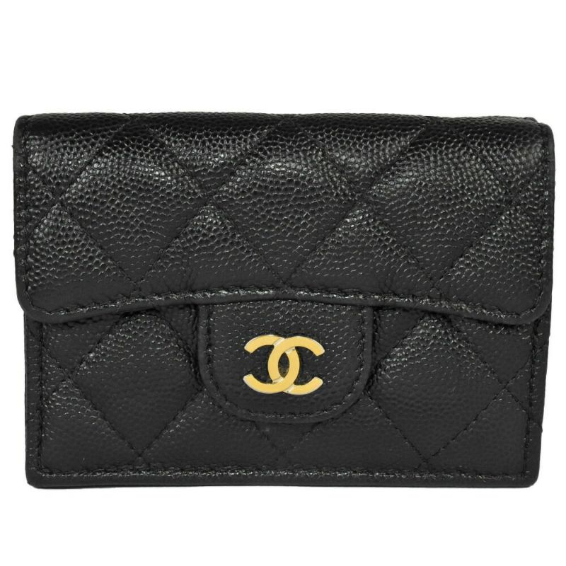 3. シャネル CHANEL マトラッセ ココマーク 小銭入付 Wホック 三つ折り財布 キャビアスキン AP0230 ブラック ゴールド金具 8桁 28番台(2019年製)【中古】