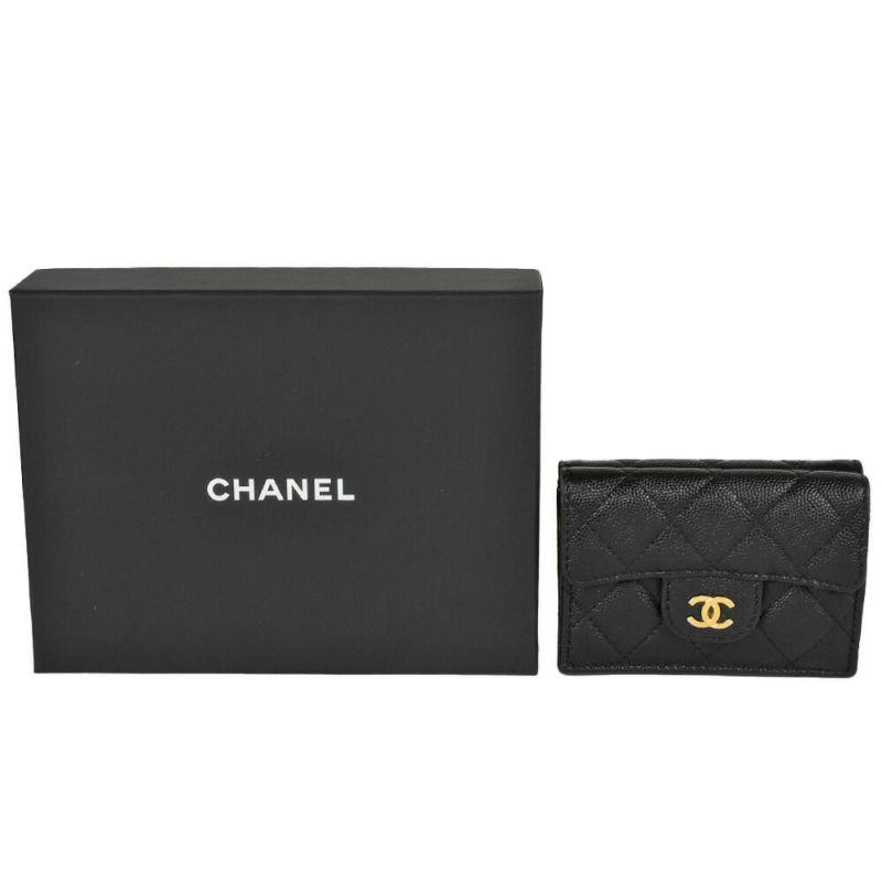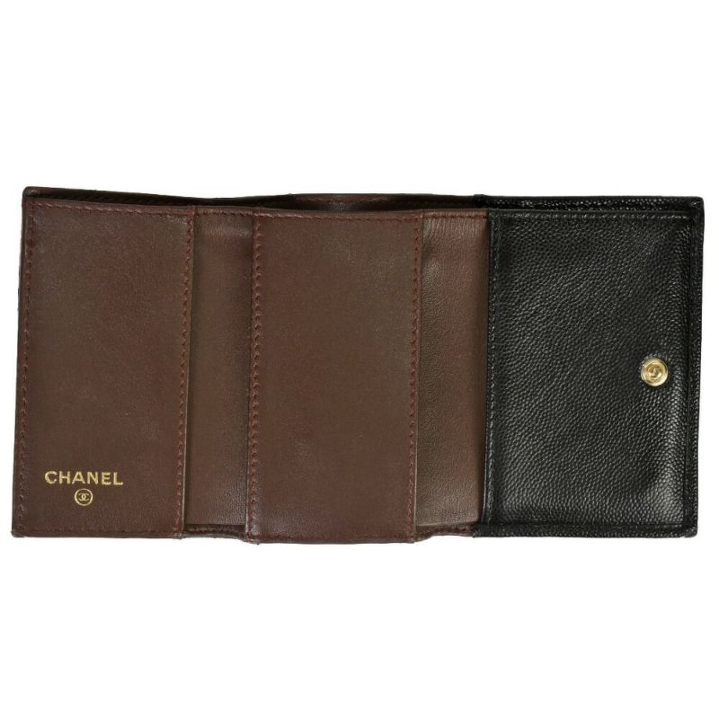 4. シャネル CHANEL マトラッセ ココマーク 小銭入付 Wホック 三つ折り財布 キャビアスキン AP0230 ブラック ゴールド金具 8桁 28番台(2019年製)【中古】