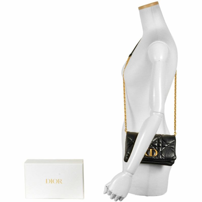 5. ディオール Dior CARO マクロカナージュ チェーンショルダー チェーンウォレット レザー ブラック ゴールド金具 レディース【中古】
