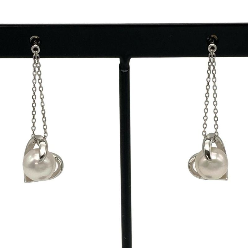 3. スタージュエリー STAR JEWELRY PEARL IN THE HEART チェーンドロップ ピアス パール 2JP0605 K10WG 2.0g ハートモチーフ【中古】