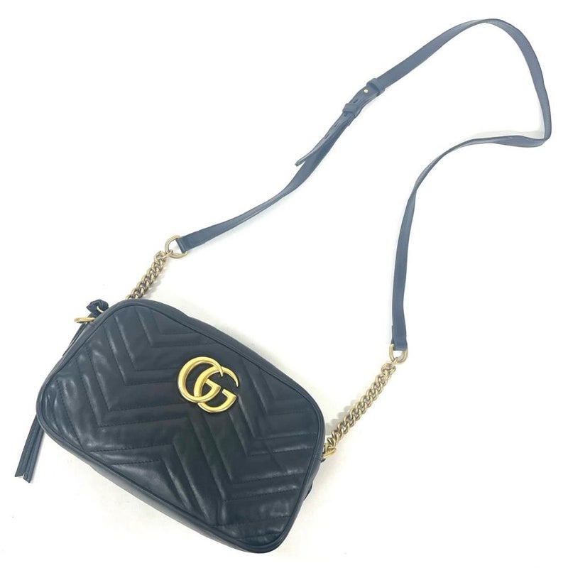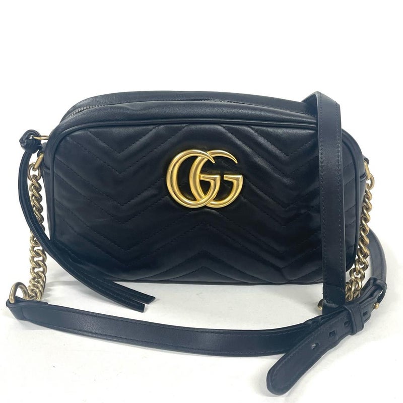 グッチ GUCCI GGマーモント ショルダーバッグ レザー 446744 ブラック【中古】