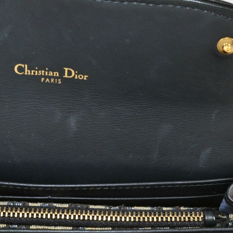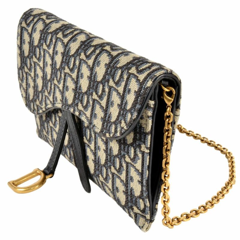 3. ディオール Dior サドル ウォレット オン チェーン ジャガード 47-MA-0252 ブルー オブリーク レディース【中古】