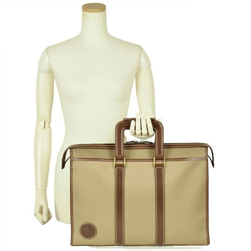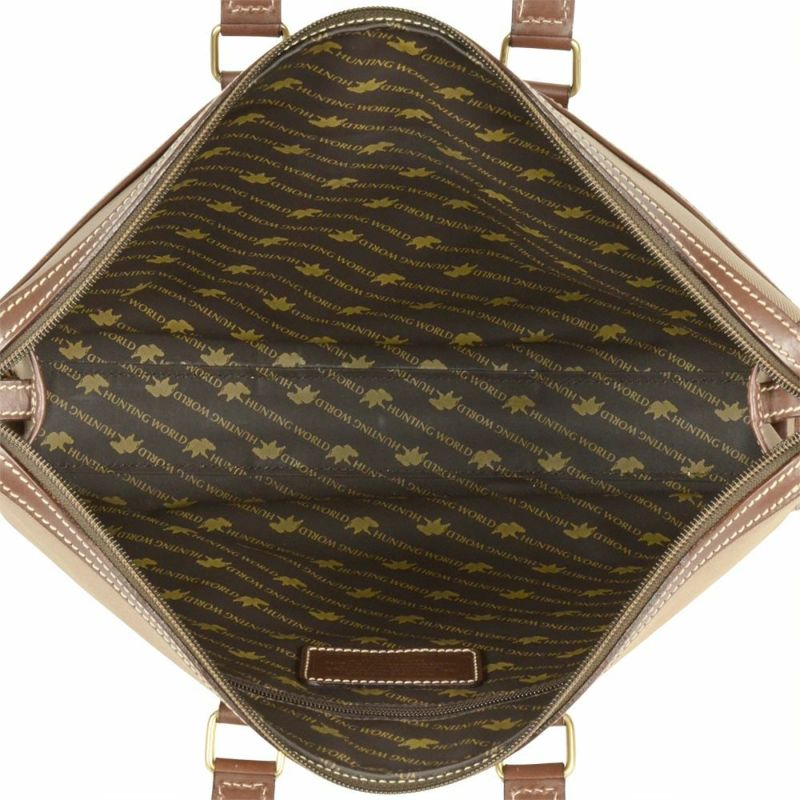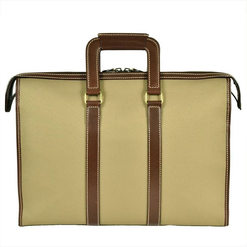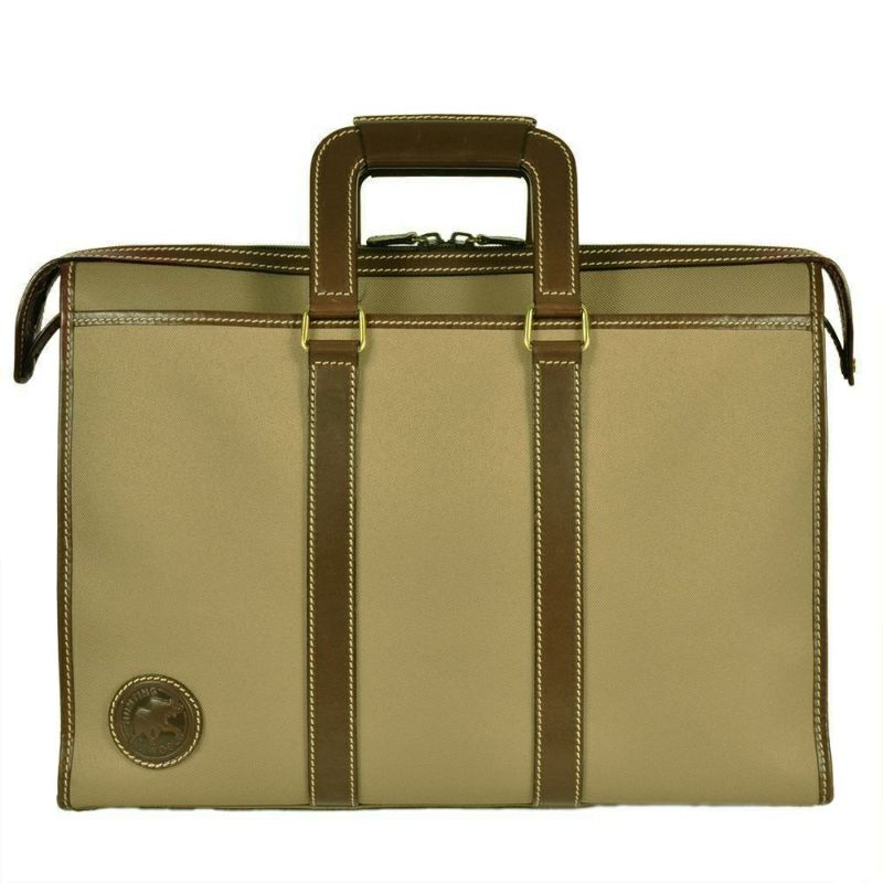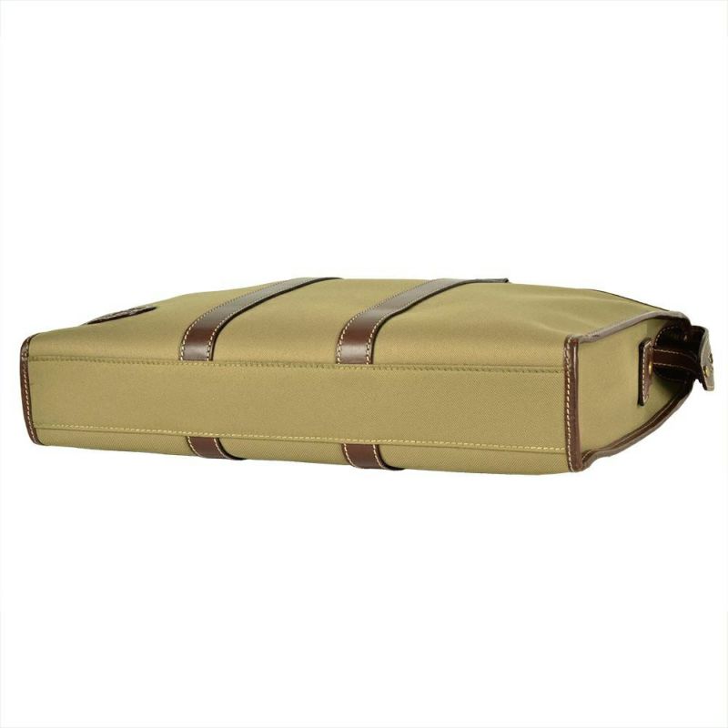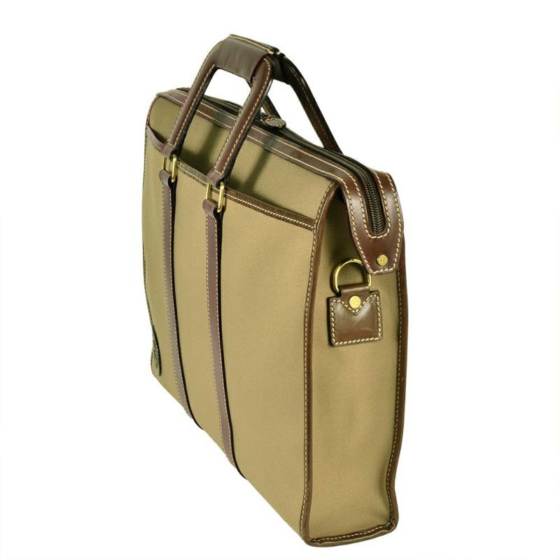 3. ハンティングワールド HUNTING WORLD ビジネスバッグ キャンバス レザー カーキ ブリーフケース ブラウン メンズ【中古】