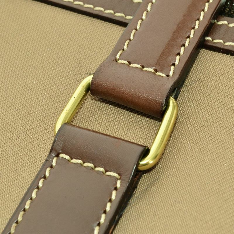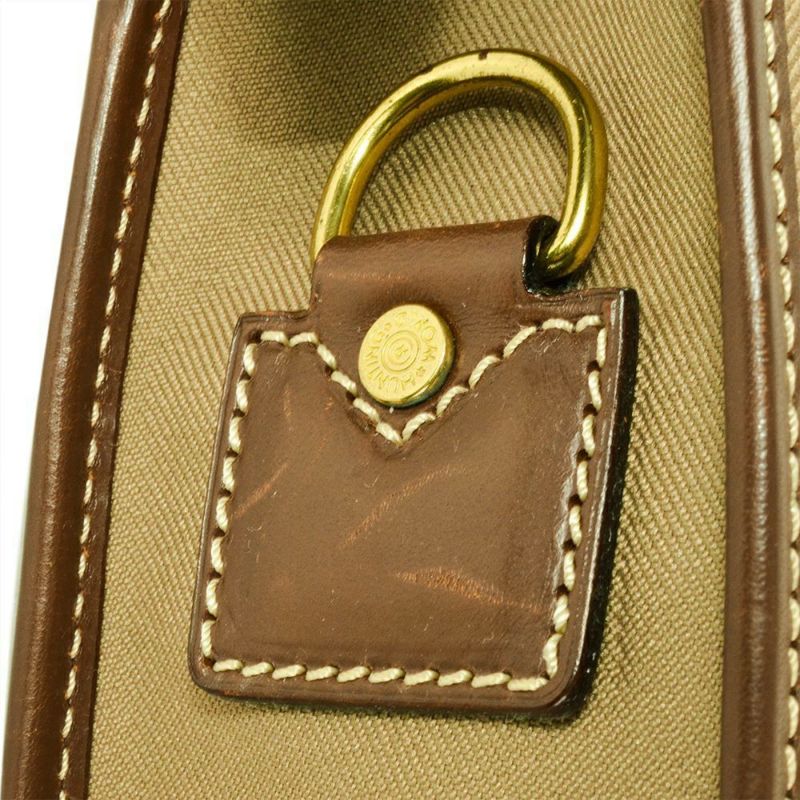 5. ハンティングワールド HUNTING WORLD ビジネスバッグ キャンバス レザー カーキ ブリーフケース ブラウン メンズ【中古】
