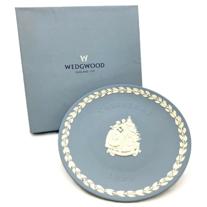 ウェッジウッド WEDGWOOD ジャスパー イヤープレート1999 クリスマス 皿 陶磁器 ペールブルー【中古】