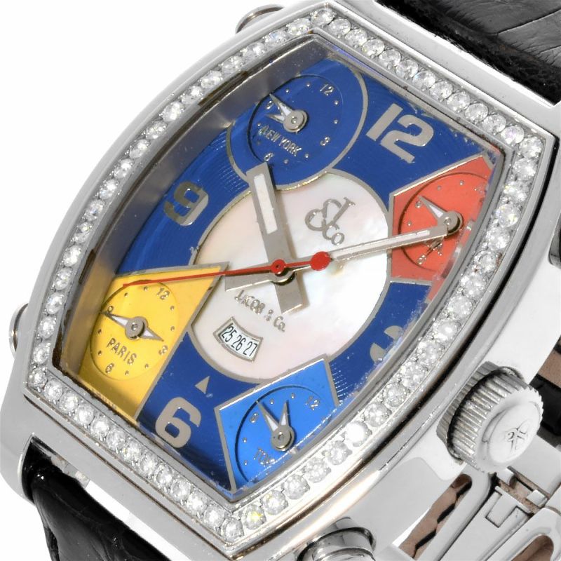 3. ジェイコブ JACOB&Co. 5タイムゾーン ダイヤベゼル 腕時計 ブルー シェル文字盤 トノー メンズ【中古】