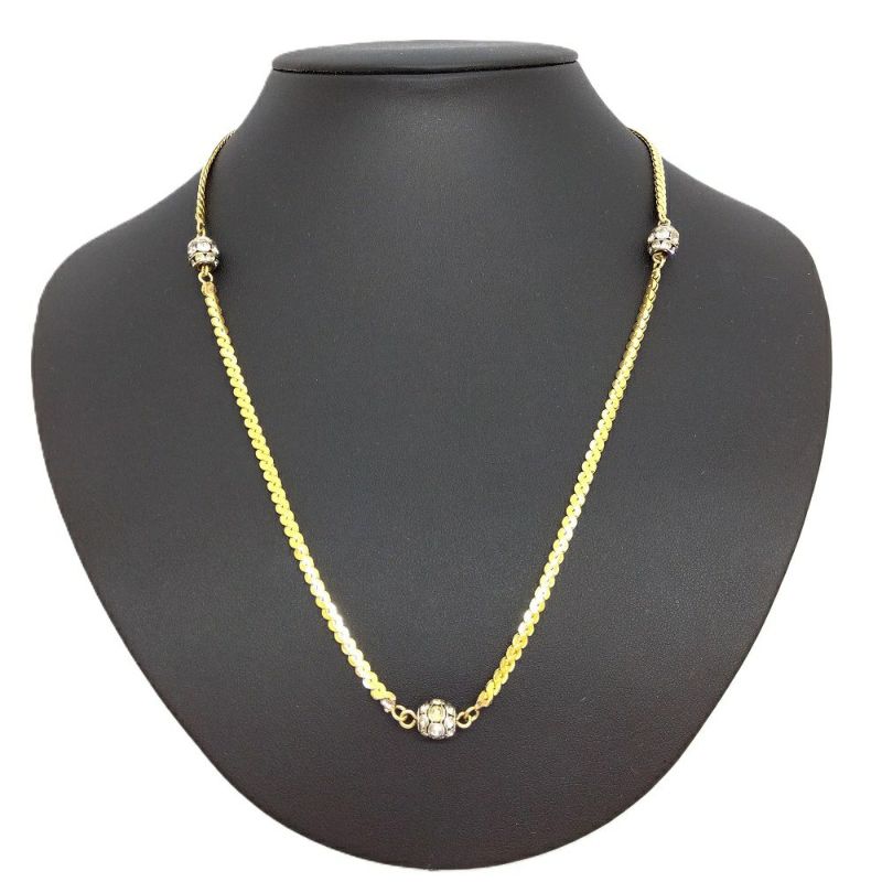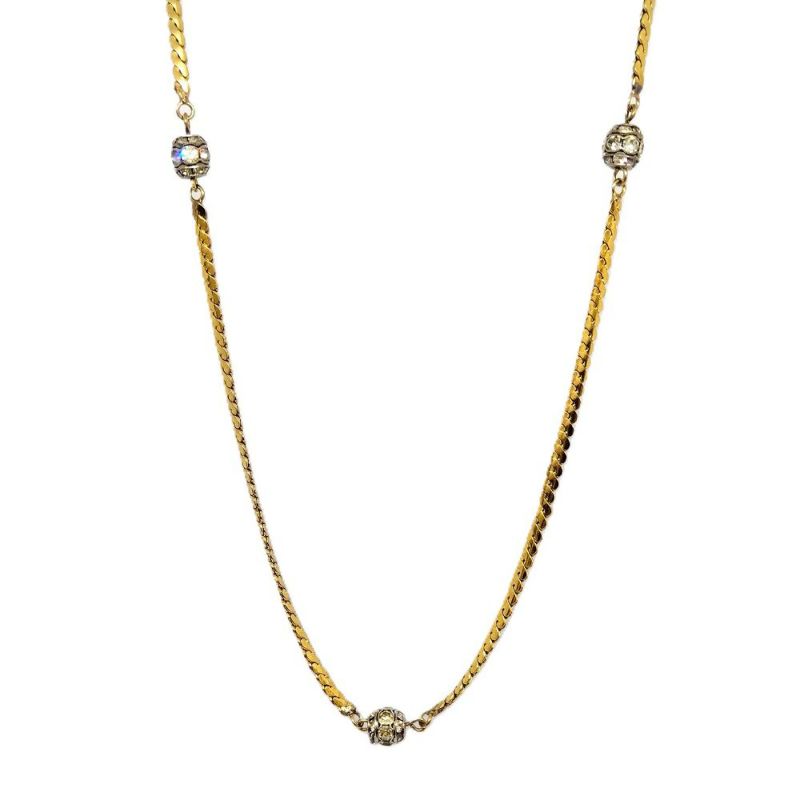 3. クリスチャンディオール Christian Dior ネックレス ゴールド ラインストーン 3P ボール ロング 訳あり 1975【中古】