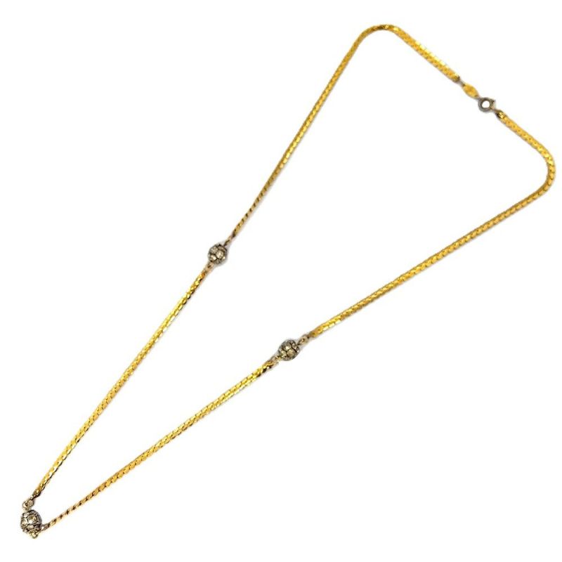 クリスチャンディオール Christian Dior ネックレス ゴールド ラインストーン 3P ボール ロング 訳あり 1975【中古】