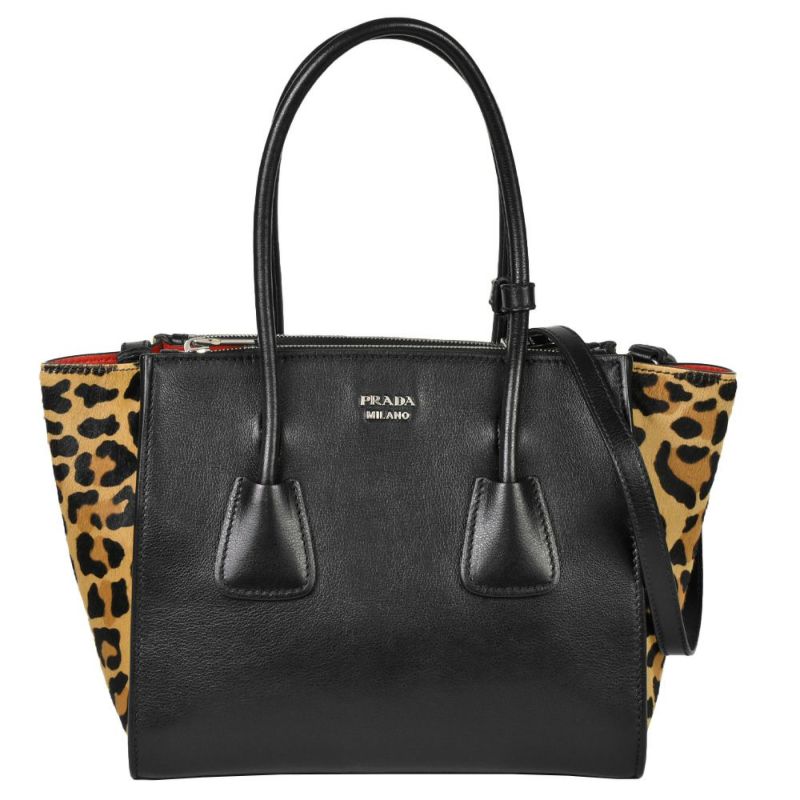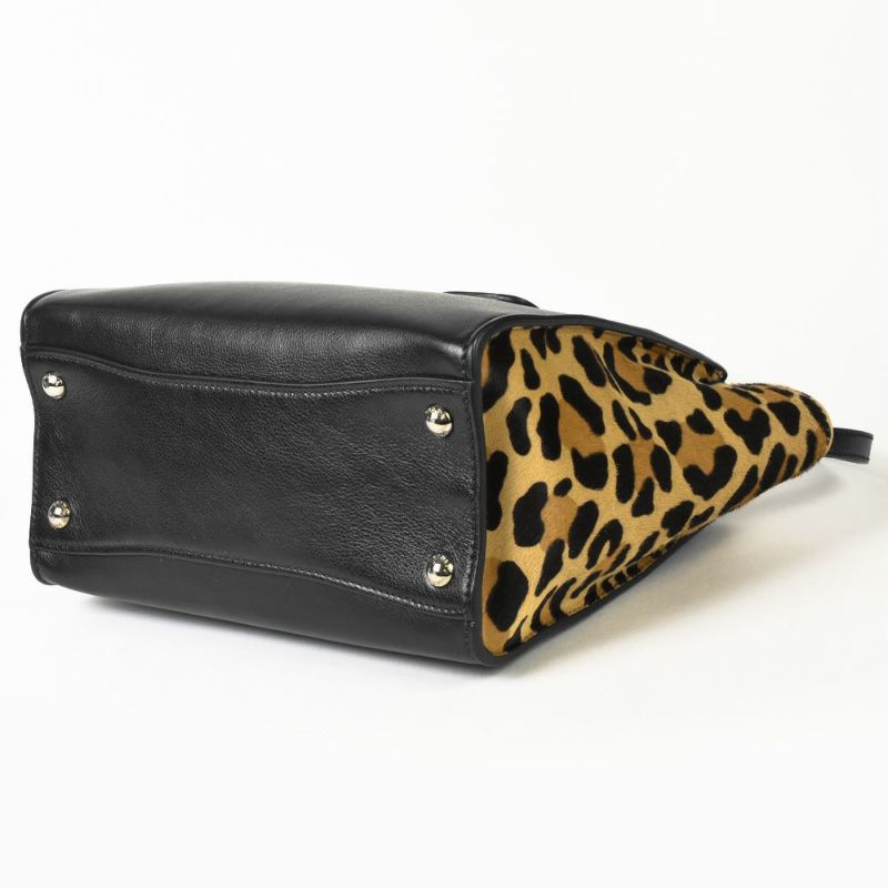 5. プラダ PRADA レオパード トートバッグ 2WAY レザー ハラコ 1BG625 ブラック ショルダーストラップ付 ハンドバッグ【中古】