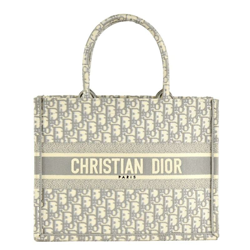 4. ディオール Dior オブリーク エンブロイダリー ミディアム ブックトート トートバッグ キャンバス M1296ZRIW グレー トロッター レディース【中古】