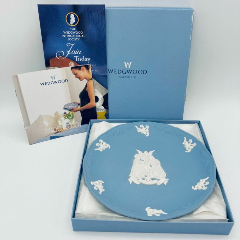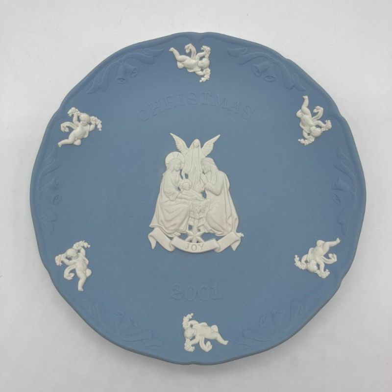 ウェッジウッド WEDGWOOD クリスマスプレート 2001 JOY ジャスパー Jasper 皿 陶磁器 ペールブルー【中古】