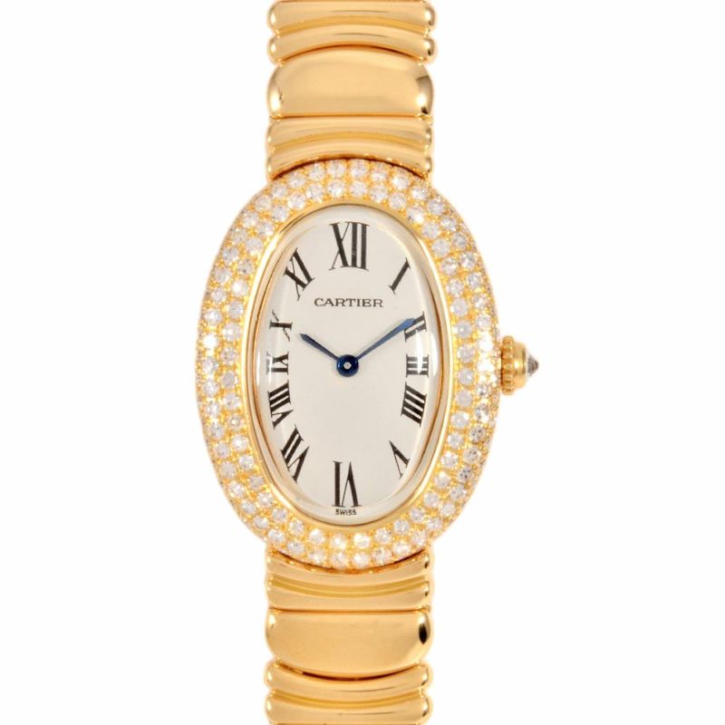 3. カルティエ Cartier 8057912 ベニュワール 腕時計 ホワイト文字盤 ダイヤベゼル 750 レディース【中古】