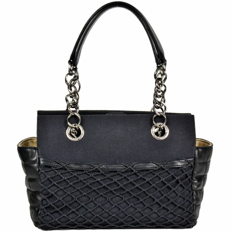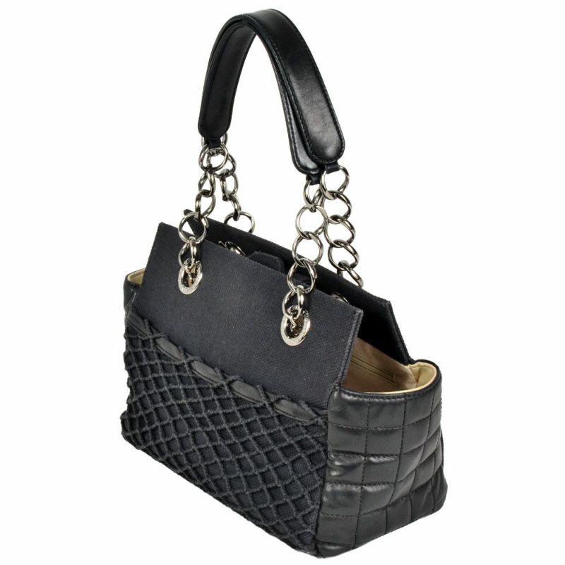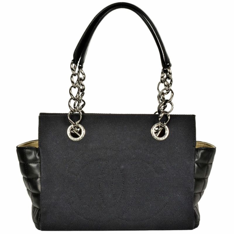3. シャネル CHANEL ココマーク チェーン ショルダーバッグ ハンドバッグ ラムスキン キャンバス ブラック デカココ レディース【中古】