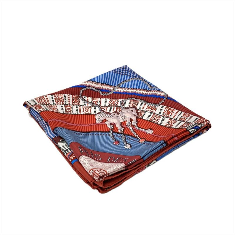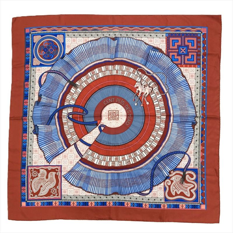 エルメス HERMES カレ90 芽家のプリーツ CENT PLIS DES MIAO スカーフ シルク レッド【中古】