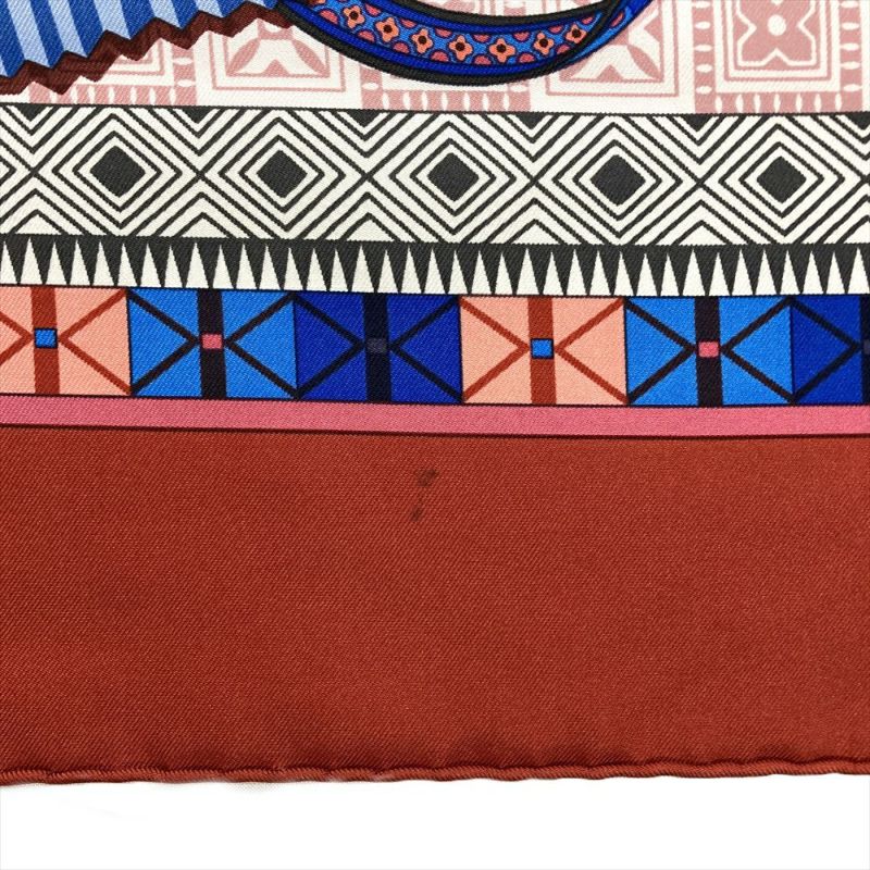 5. エルメス HERMES カレ90 芽家のプリーツ CENT PLIS DES MIAO スカーフ シルク レッド【中古】