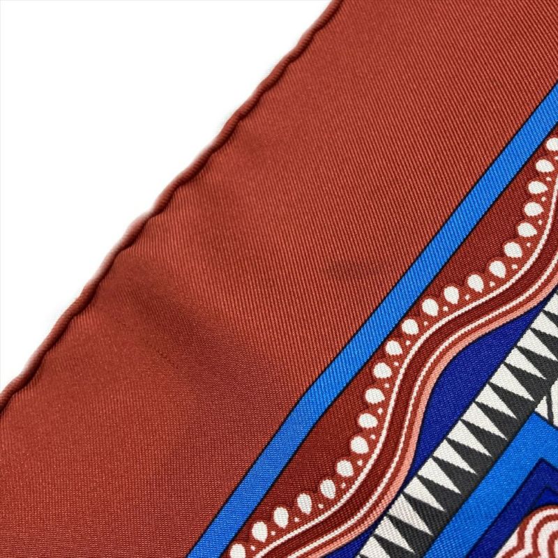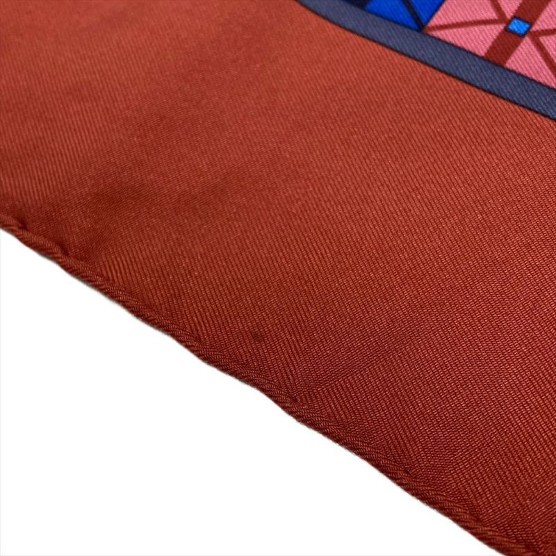 4. エルメス HERMES カレ90 芽家のプリーツ CENT PLIS DES MIAO スカーフ シルク レッド【中古】
