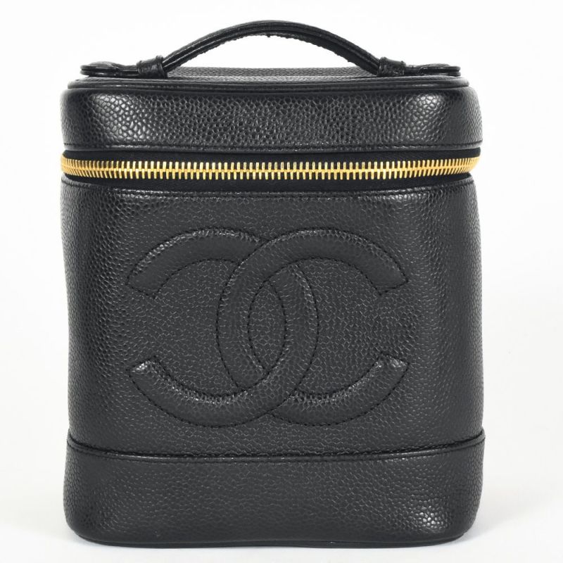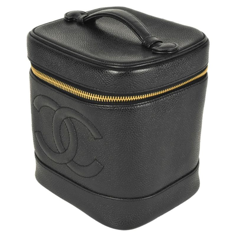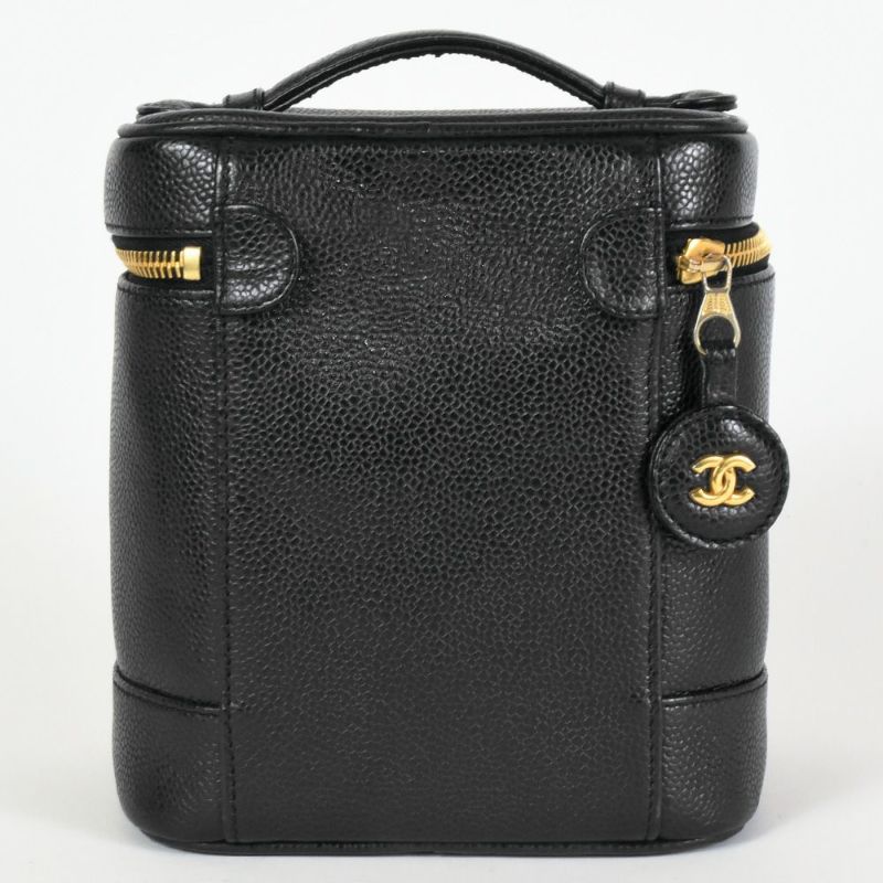 送料無料 シャネル CHANEL バニティ バッグ 化粧ポーチ キャビアスキン ブラック レディース【中古】
