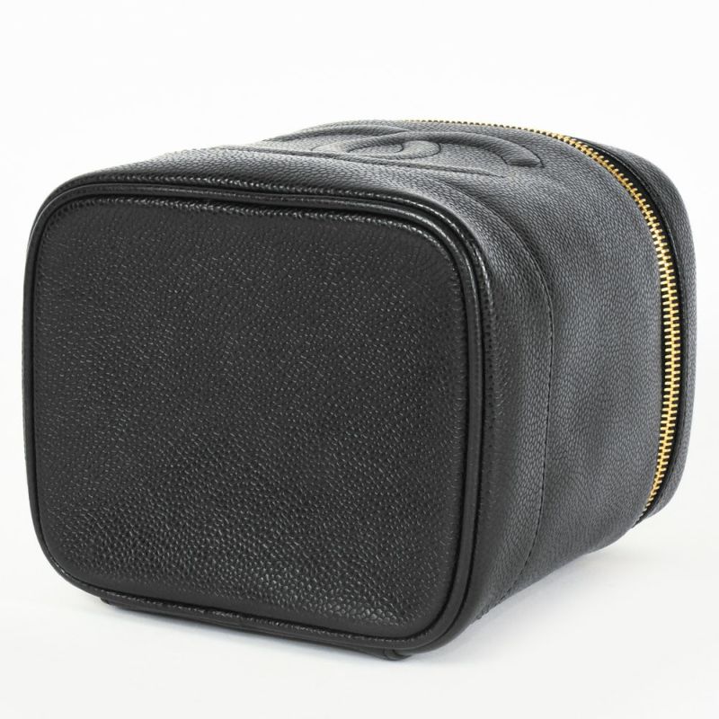 4. シャネル CHANEL バニティ バッグ 化粧ポーチ キャビアスキン ブラック レディース【中古】