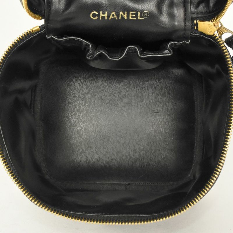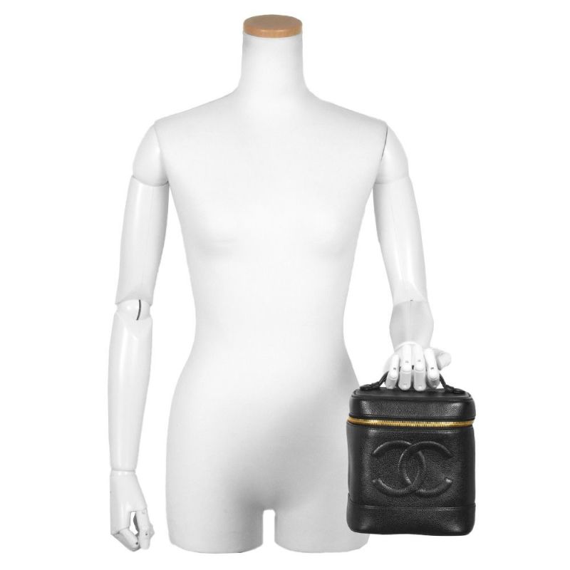 5. シャネル CHANEL バニティ バッグ 化粧ポーチ キャビアスキン ブラック レディース【中古】