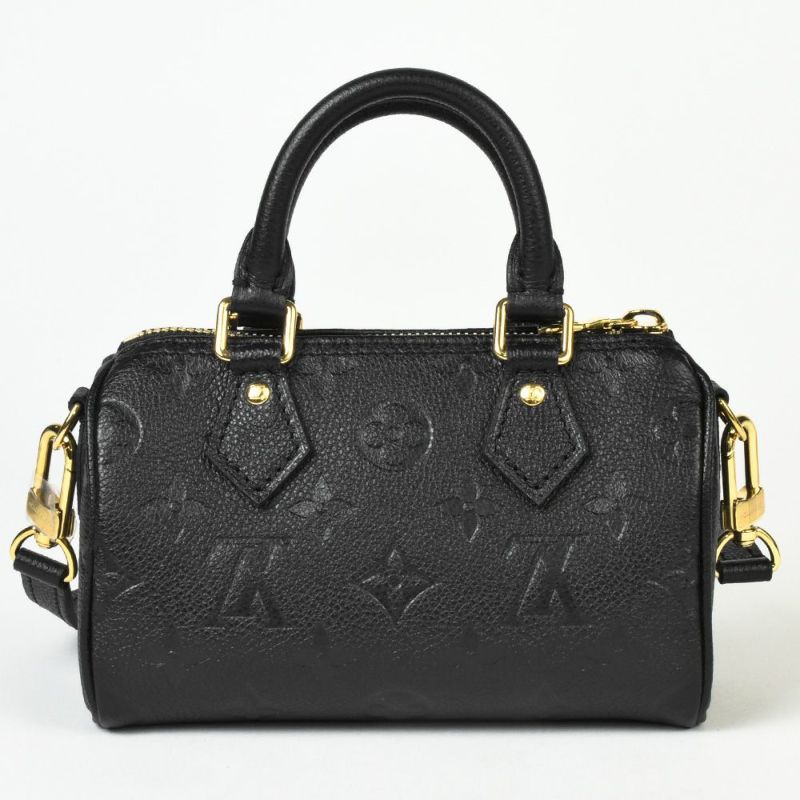 4. ルイヴィトン LOUIS VUITTON ナノ・スピーディ ハンドバッグ 2WAY モノグラム アンプラント M82450 ブラック ゴールド金具 RFID【中古】