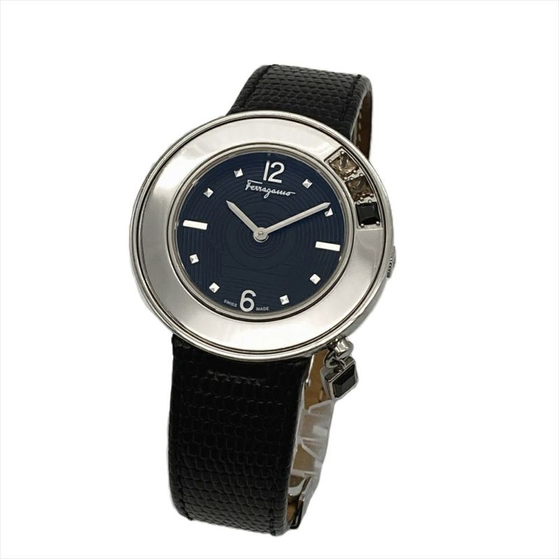 4. フェラガモ Ferragamo F64 スパークリング 腕時計 ブラック文字盤 レディース【中古】