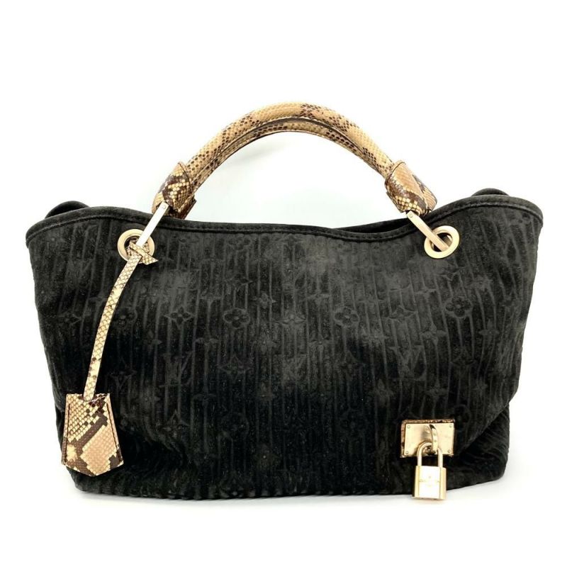 4. ルイヴィトン LOUIS VUITTON ウィスパーGM ハンドバッグ スウェード パイソン M95811 ブラック VI2078 モノグラム レディース【中古】