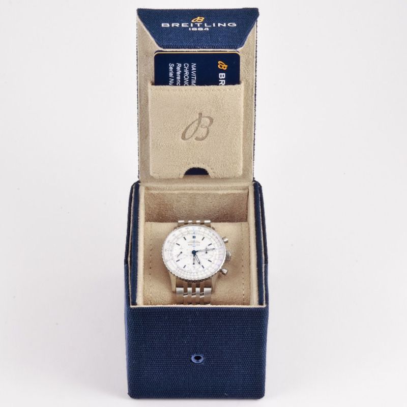 3. ブライトリング BREITLING AB0139A71G1A1 ナビタイマー クロノグラフ 腕時計 シルバー文字盤 SS 裏スケ ブルースチール メンズ【中古】