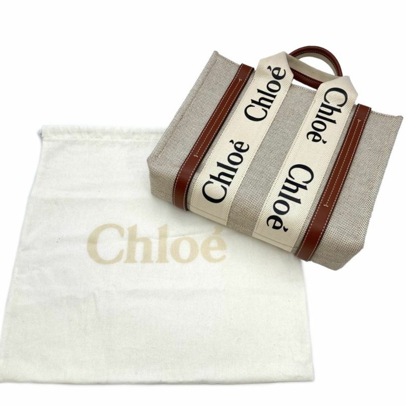5. クロエ Chloe ウッディスモール トートバッグ コットン レザー 4217565 ブラウン レディース【中古】