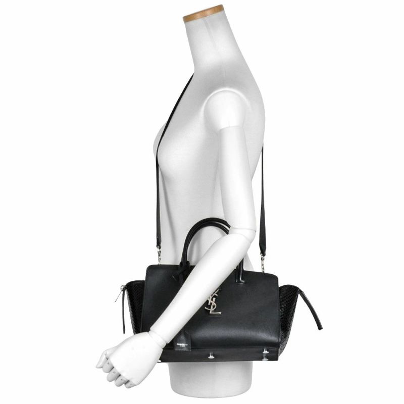 3. サンローラン SAINT LAURENT ダウンタウン カバス ショルダーストラップ付 ハンドバッグ レザー パイソン 436834 ブラック【中古】