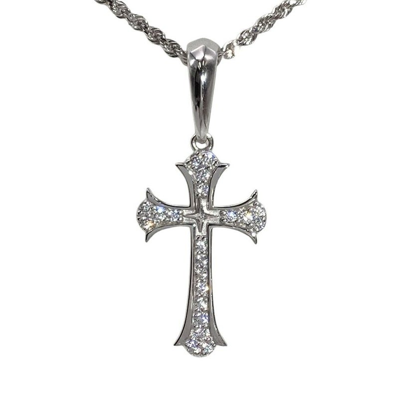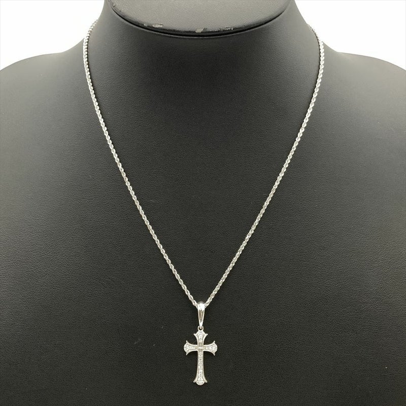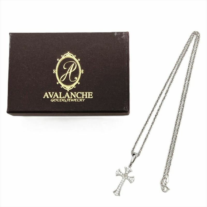 アヴァランチ AVALANCHE クロス ネックレス K10WG 5.6g 10K ホワイトゴールド 透明石【中古】