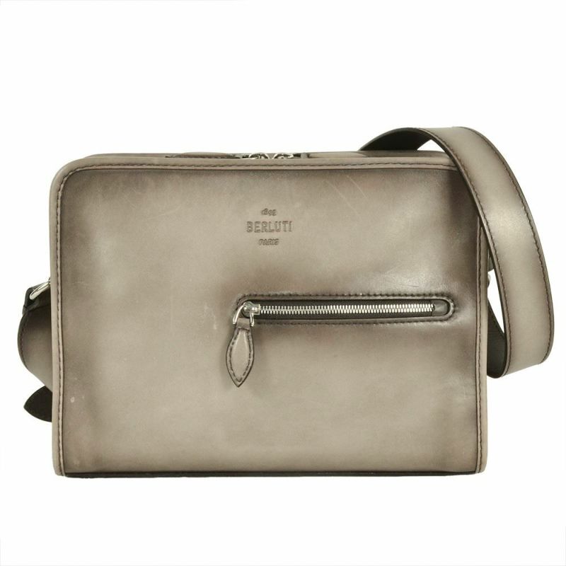 3. ベルルッティ Berluti ジュルナリエ メッセンジャーバッグ レザー グレー ショルダーバッグ メンズ【中古】