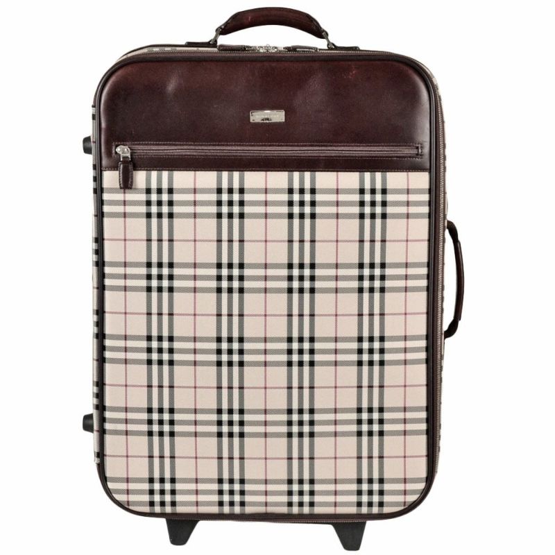 3. バーバリー BURBERRY ノバチェック キャリーバッグ キャンバス レザー ブラウン【中古】