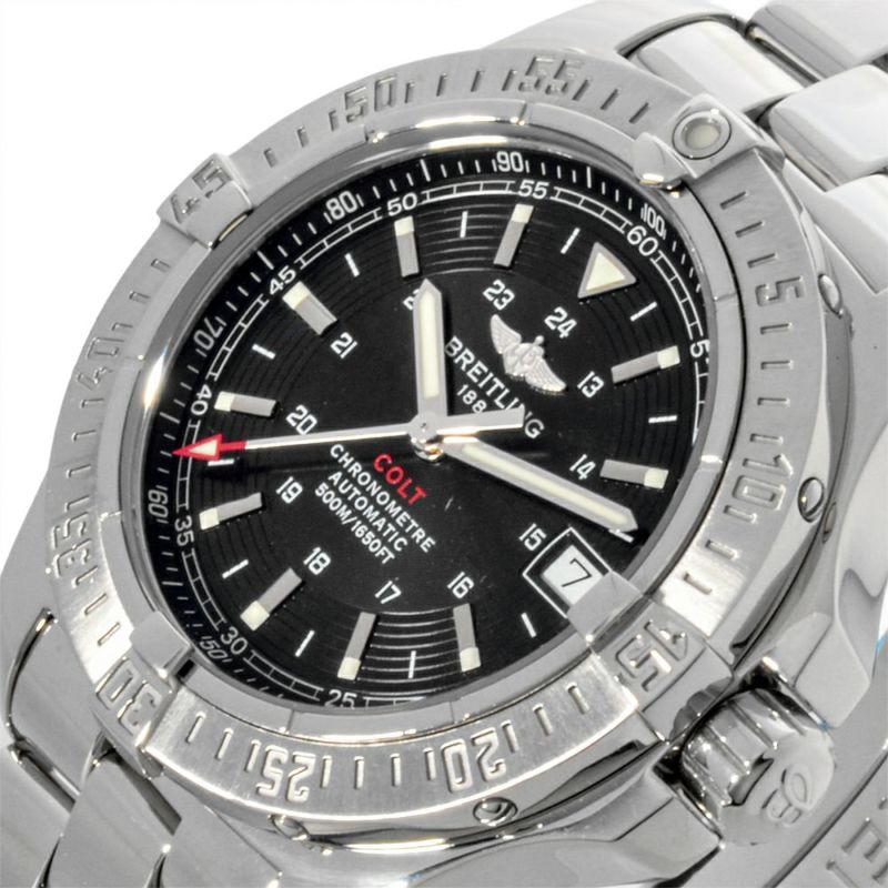 3. ブライトリング BREITLING A17380 コルト 腕時計 ブラック文字盤 SS デイト メンズ【中古】