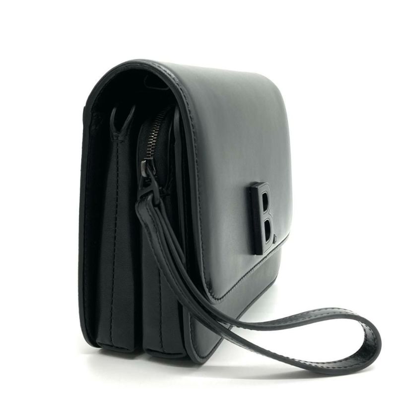 5. バレンシアガ BALENCIAGA Bロゴ ショルダーバッグ レザー 592898 ブラック レディース【中古】