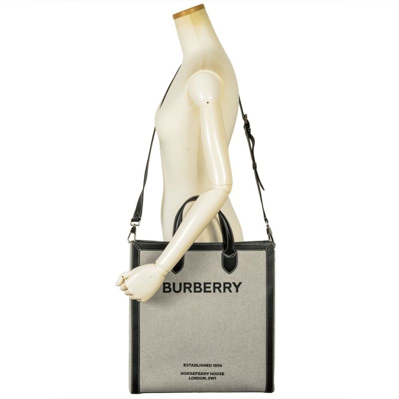 5. バーバリー BURBERRY ホースフェリープリント ショルダーバッグ 2WAY キャンバス 8037936 ブラック シルバー金具 2WAY ユニセックス【中古】