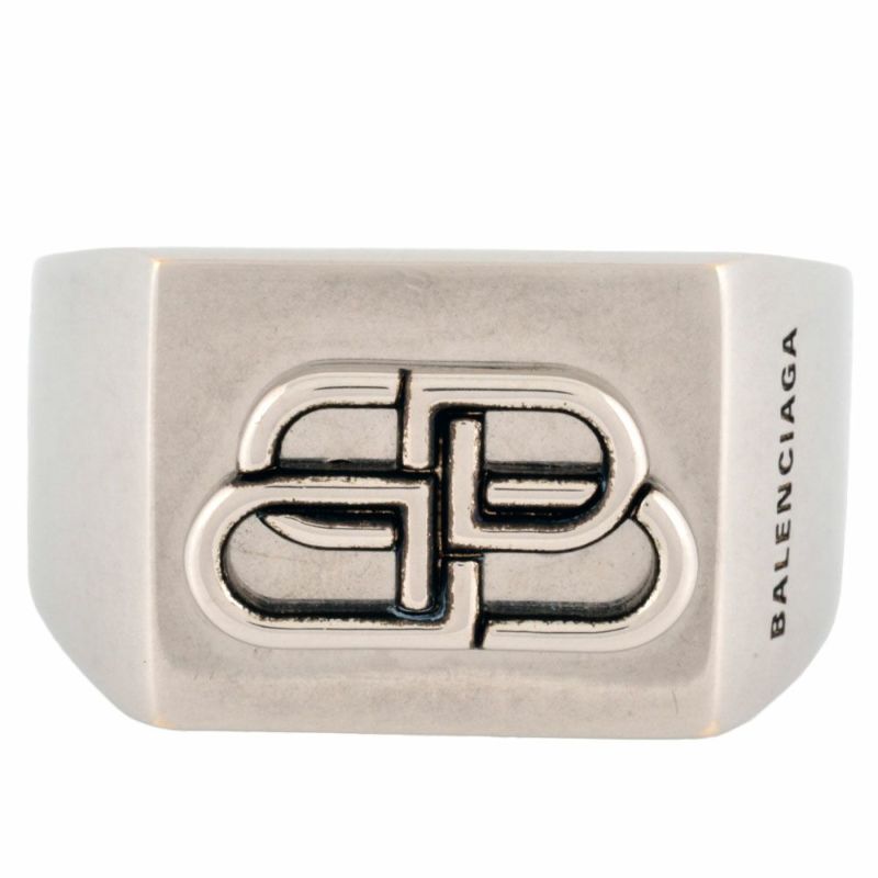 バレンシアガ BALENCIAGA BB ロゴ シグネット リング 指輪 メタルg #56 シルバー【中古】