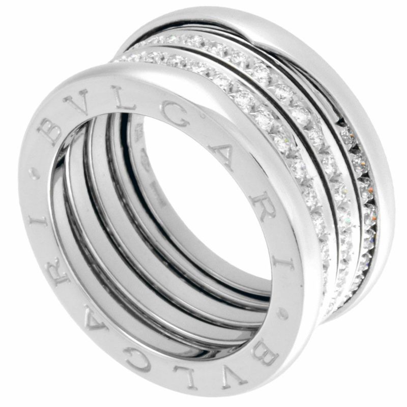 送料無料 新品仕上げ済 ブルガリ BVLGARI ビー ゼロワン 4バンド リング 指輪 ダイヤモンド #53 K18WG レディース【中古】