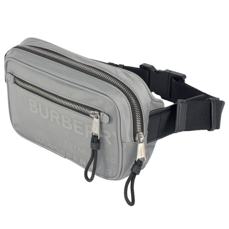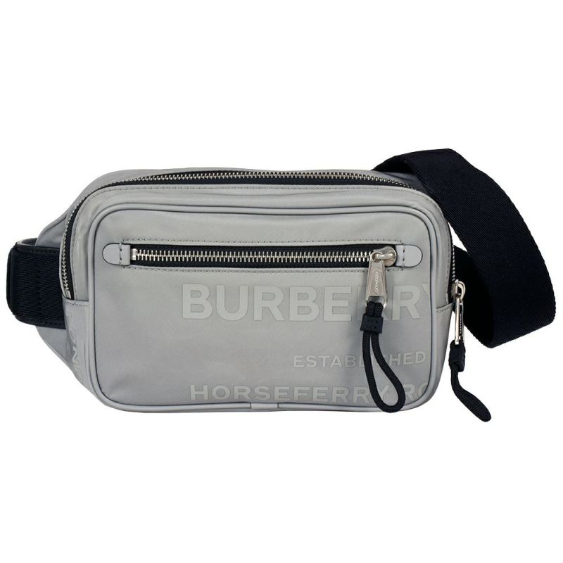 4. バーバリー BURBERRY ホースフェリー バムバッグ ボディバッグ ナイロン ポリウレタン グレー【中古】