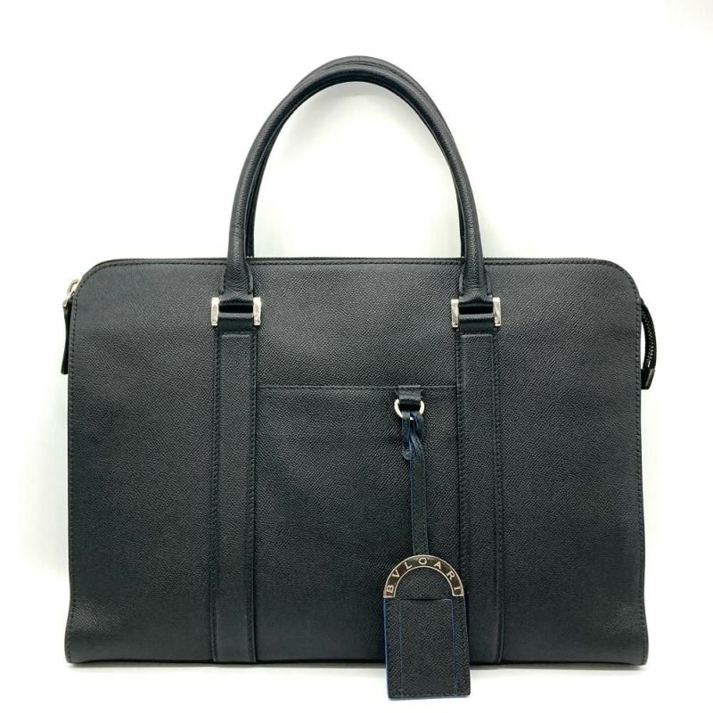 4. ブルガリ BVLGARI ブルガリ マン ビジネスバッグ サフィアーノ 286065 ブラック ブルー バイカラー メンズ【中古】