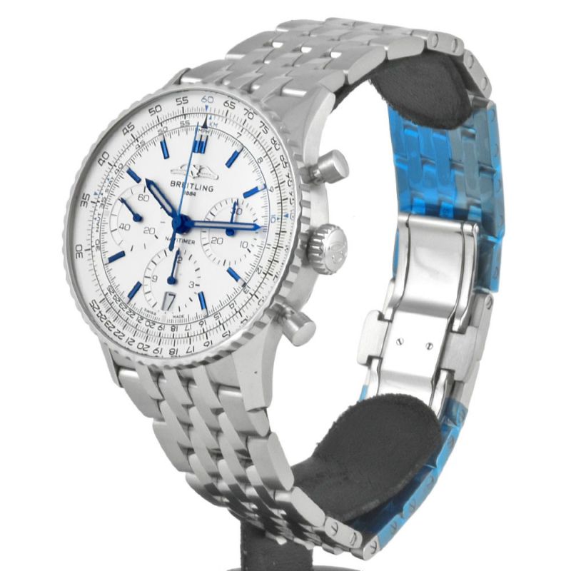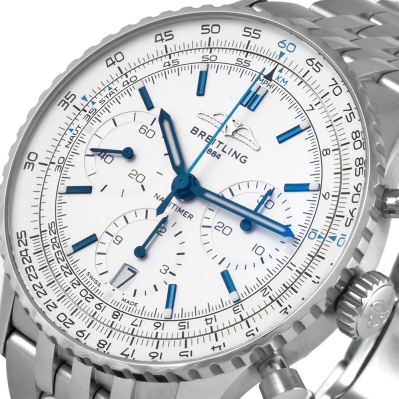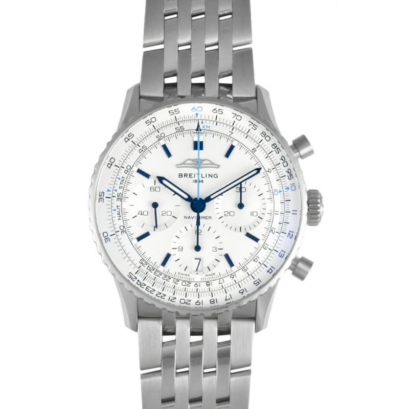 3. ブライトリング BREITLING AB0139A71G1A1 ナビタイマー クロノグラフ 腕時計 シルバー文字盤 SS 裏スケ ブルースチール メンズ【中古】
